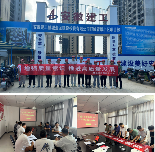為落實好2023年全國“質(zhì)量月”活動要求,近日,建工安裝滁州分公司分別在舒城片區(qū)項目、光明徐小牧場、阜南污水處理廠等項目陸續(xù)舉辦了2023年“質(zhì)量月”活動啟動儀式。分公司領(lǐng)導(dǎo)班子成員、分公司相關(guān)部門負責人、項目部全體人員參加了啟動儀式。