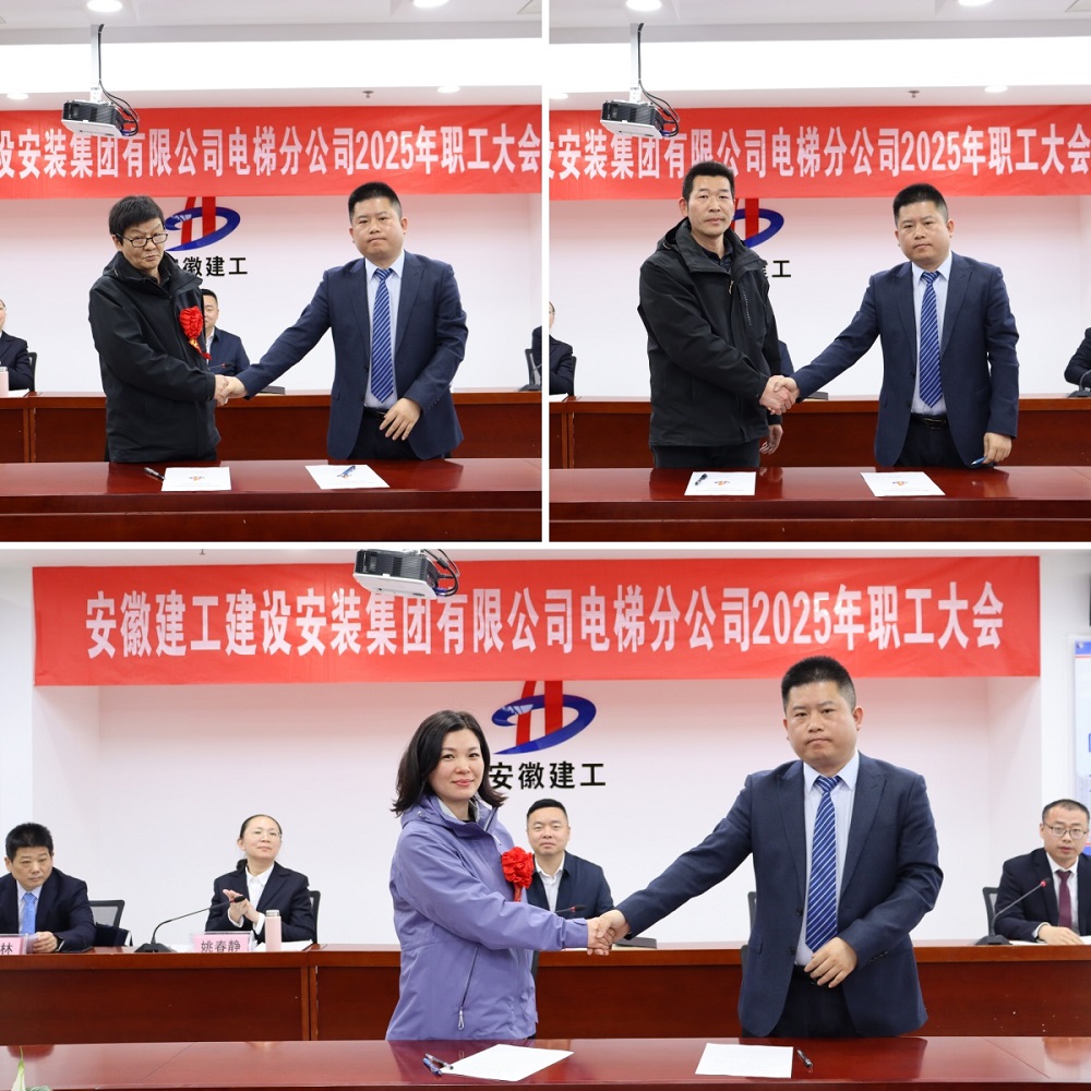 會上,宣貫了建工集團三屆二次職代會暨2025年工作會議和建工安裝十七屆五次職代會精神,與分公司市場開發(fā)部及所屬各片區(qū)項目部簽訂了《2025年度經(jīng)濟責任書》,表彰了電梯分公司2024年度先進集體和先進個人。
