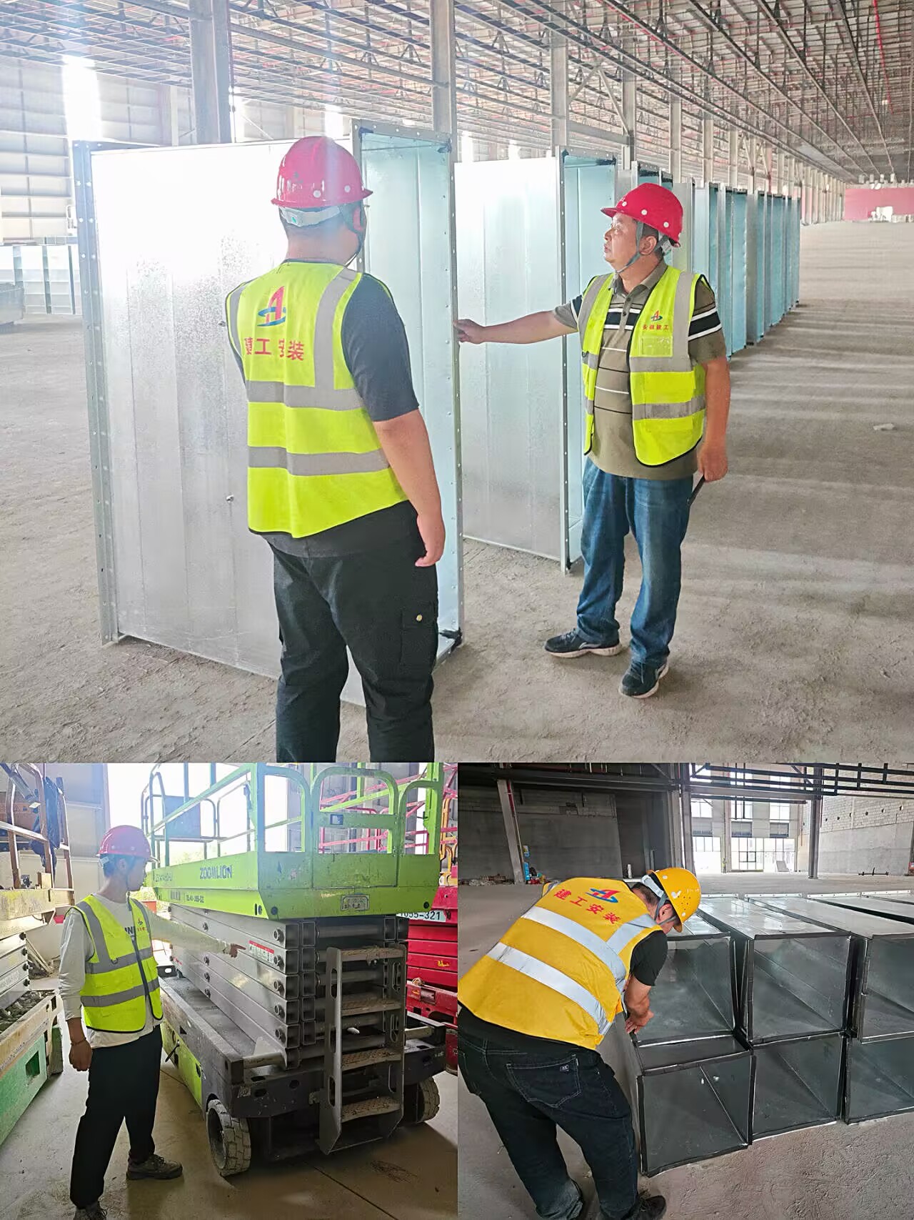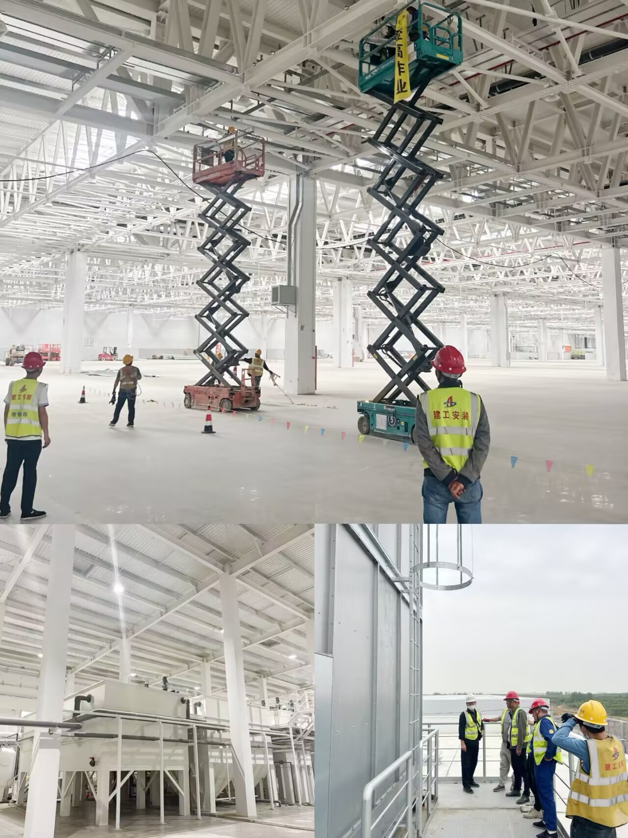 走進(jìn)項(xiàng)目施工現(xiàn)場(chǎng),銀灰色的鋼結(jié)構(gòu)廠房在陽(yáng)光下熠熠生輝,長(zhǎng)達(dá)百米的標(biāo)準(zhǔn)化車(chē)間整齊排列,工業(yè)美學(xué)與實(shí)用功能完美融合。現(xiàn)場(chǎng)管理人員正在監(jiān)督支吊架整改安裝、冷卻塔設(shè)備避雷針安裝交底等,其中污水處理站安裝調(diào)試已完成,下一步全體人員將以高效率和高標(biāo)準(zhǔn)推動(dòng)項(xiàng)目順利通過(guò)竣工驗(yàn)收。